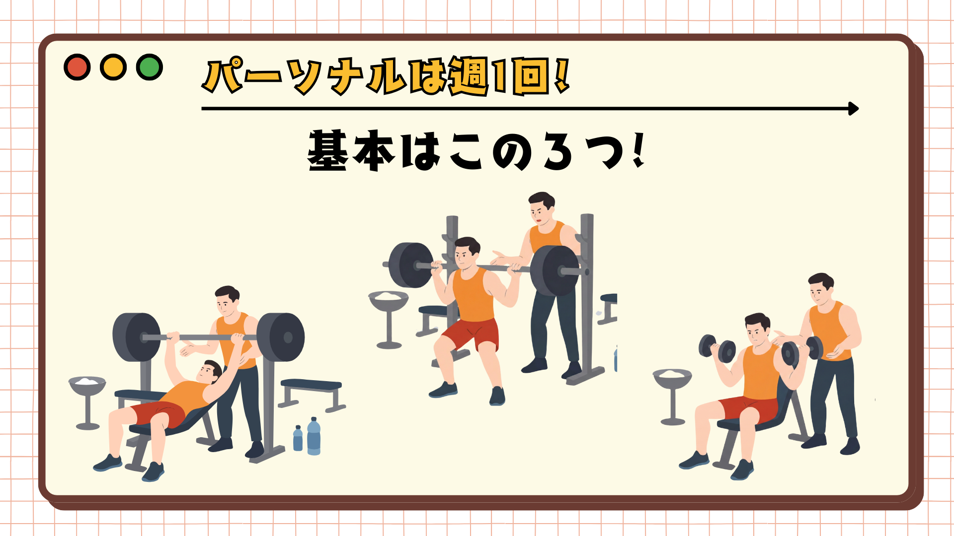 一人でジムに行くと、キツくなったらつい回数を減らしたり、フォームが崩れたりしてしまいます。ですが、ここではトレーナーが限界ギリギリを見極めて補助してくれるため、たった数十分でも筋肉に強烈な刺激が入ります。